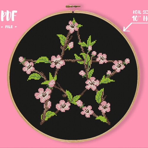 Floral Star Cross Stitch Pattern Cute Pastel Pentagram Etsy