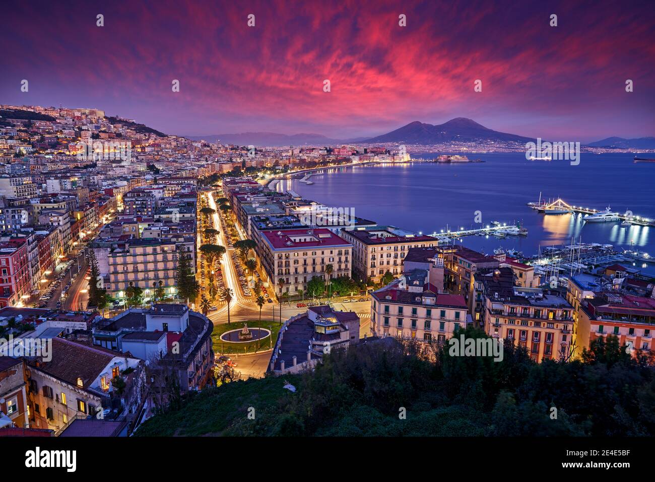 Naples Twilight Evening Pink Violet Sunset Town Napoli In Italy Travelling In The Europe Urban Landscape With City Sea Hills And Vesuvio Volcano Stock Photo Alamy